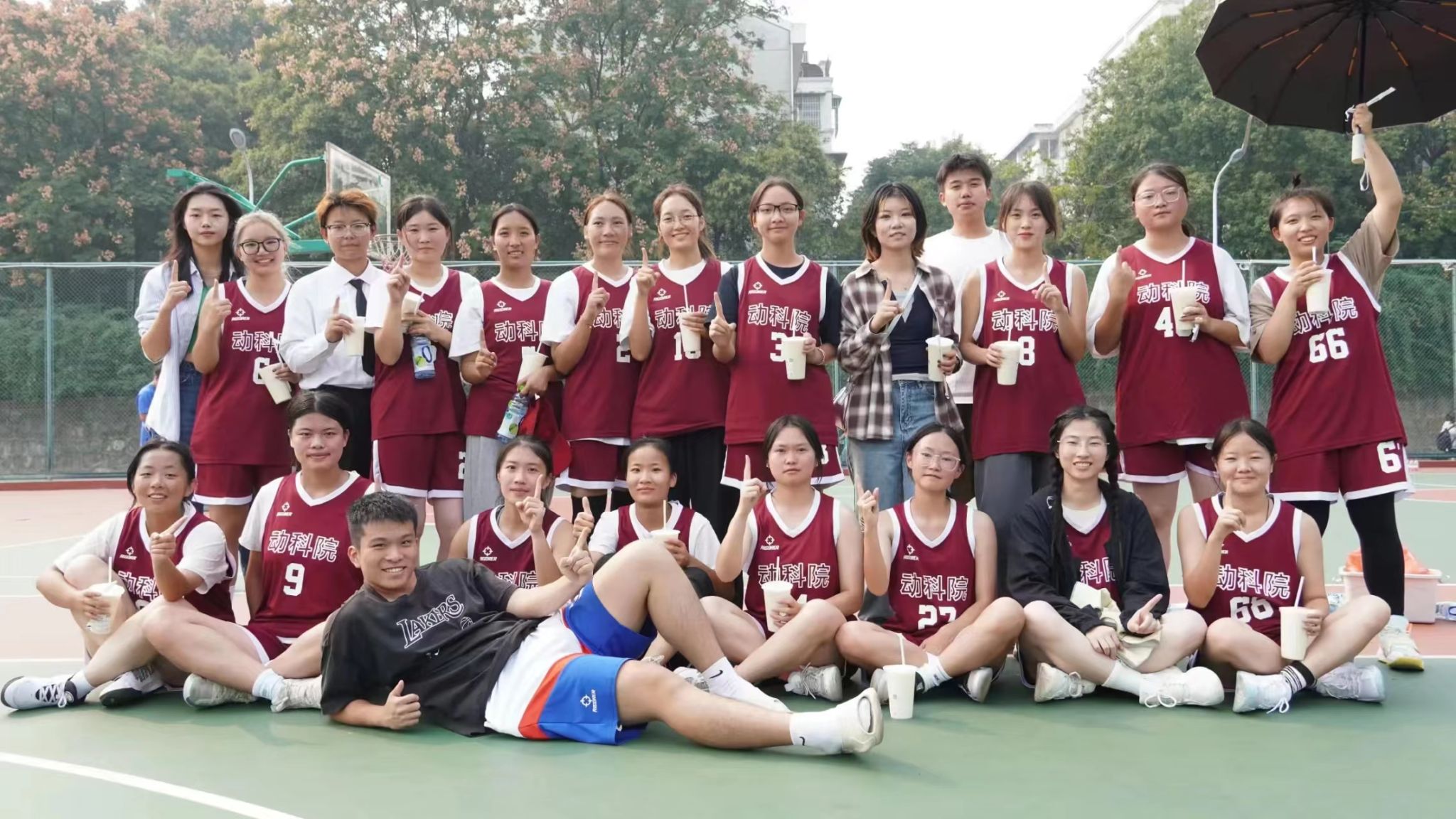 10月13日中午,动物科技学院女篮队与植物保护学院女篮队比赛打响。开局,我院势如破竹,9号球员凭借身高优势多次拦下对方投球,为队员提供最强力的防守,第一局以10:0比分遥遥领先。而后我院仍奋力拼搏毫不松懈火力全开,最终比赛结束44:18!动科获胜!