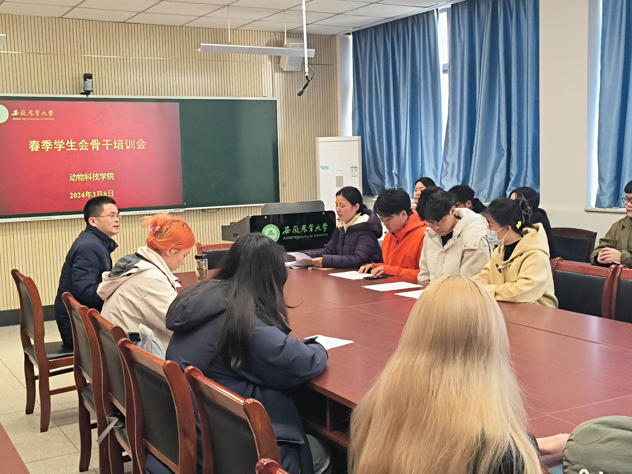 本网讯 3月8日,动物科技学院召开学生会骨干培训交流会,会议由学院党委副书记章巍主持,学院团学工作负责人和学生会副部长及以上学生会骨干参会。