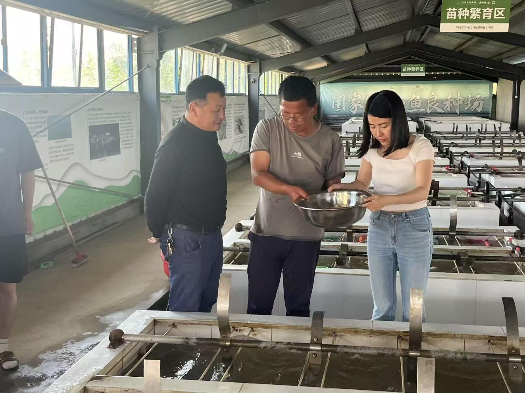 本网讯 7月1日,学院副院长袁小琛、水产系教师张焱鹏一行,前往巢湖三珍国家级鮰鱼良种场开展访企拓岗促就业专项行动,并看望在该企业工作的校友,良种场总经理边家荣参加活动。