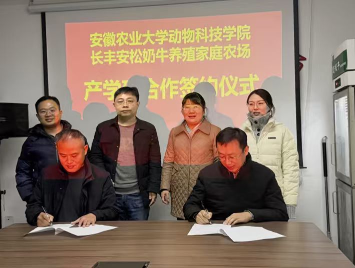 小院共建单位代表在交流环节分享了各自的研究方向与合作计划,并签订产学研合作意向书。长丰县双墩镇安松奶牛养殖家庭农场总经理孙安松阐述了企业在推动产业升级方面的实践与愿景。