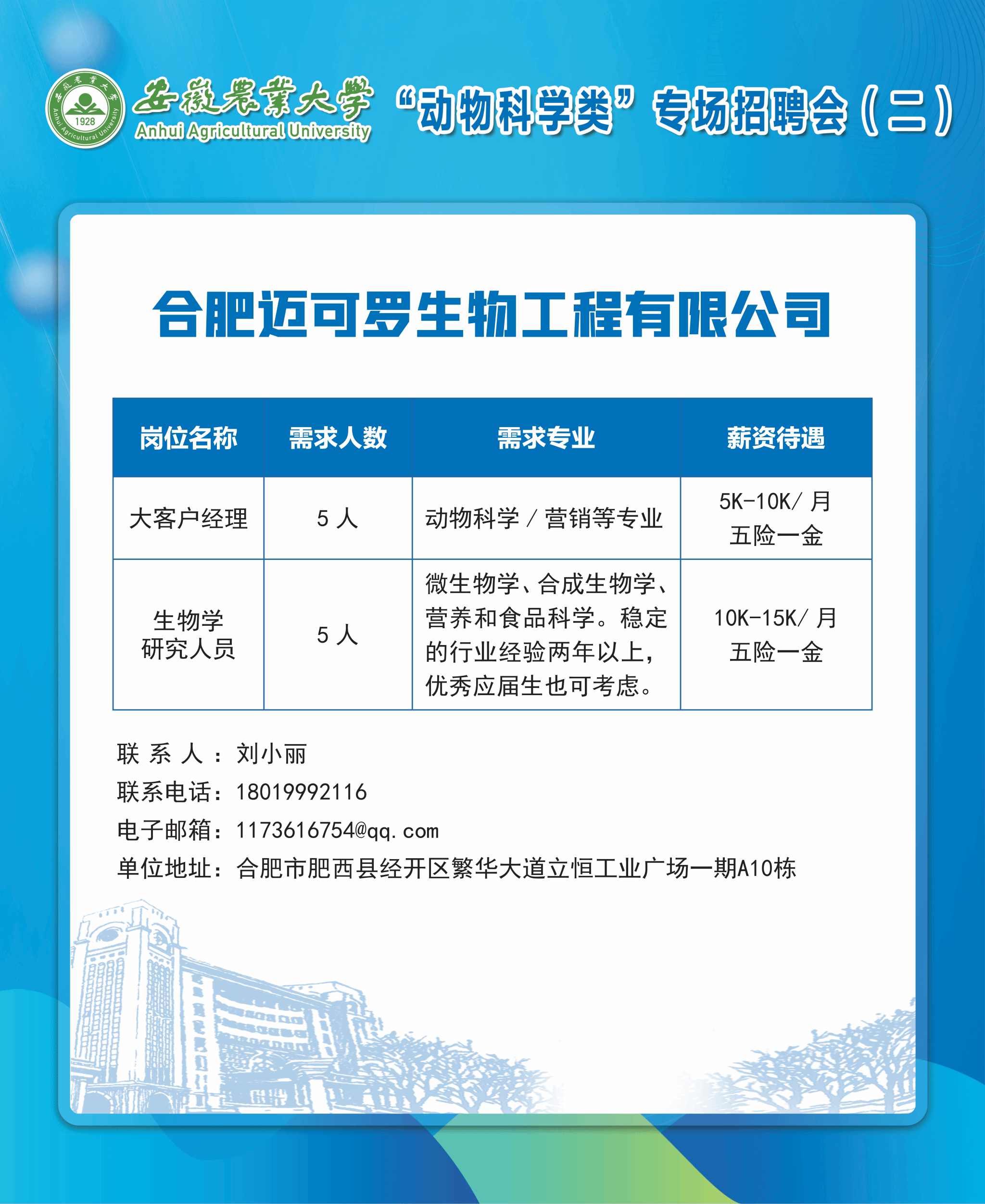 合肥迈可罗生物工程有限公司集科、工、贸于一体,是以科研为主导的高科技企业。公司位于国家科技城、安徽省会合肥。公司以安徽农业大学林学与园林学院和动物科学学院为技术依托,产品研发团队拥有多位教授(博士生导师)、博士、硕士。公司致力于饲料添加剂和添加剂预混合饲料的研究、生产和销售,拥有饲料添加剂新特产品--虫草欣康(新饲证字(2006)04号),现已成功开发鸡用、猪用系列预混料产品。公司产品绿色、层次多、品种全、适用面广,养殖效益突出,一经推向市场,即获得良好回报。