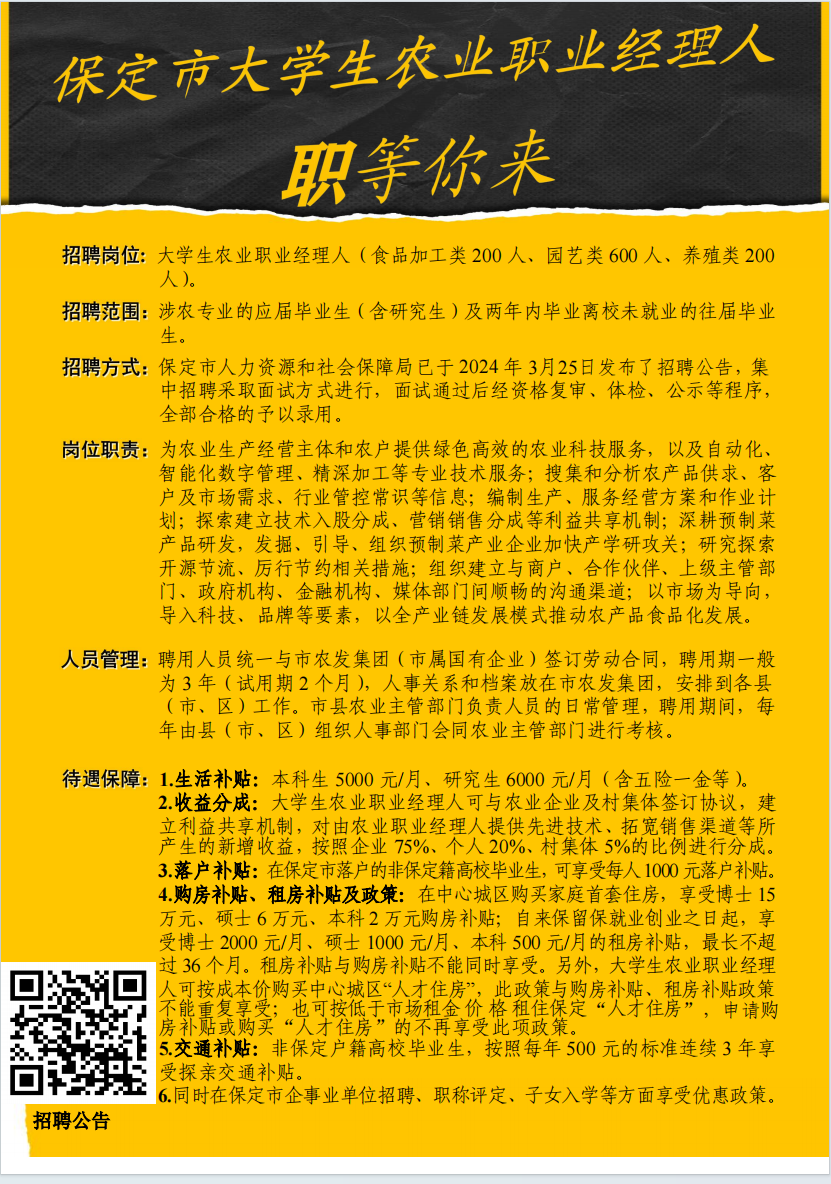 招聘信息-保定市大学生农业职业经理人