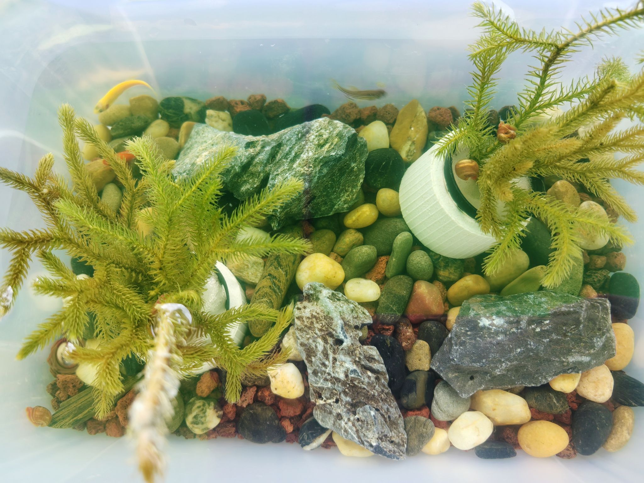 本届赛事引发热烈反响,共吸引200余名学生报名参与。参赛作品以微型生态景观为载体,巧妙融合环保理念与艺术创作,展现出蓬勃的自然生命力。评审组从创意构思、环保理念、视觉呈现及生态价值四个维度进行综合考量,最终评选出各等级奖项。经严格评审,23水产养殖学-1班许明旺同学创作的《枕石》摘得桂冠,二等奖由《水下小森林》、《波光碧影》等2件作品获得,三等奖由《碧影栖境》、《山清水秀》、《青嶂听涛》等3组作品获得,《蜿蜒绵亘》、《自然循环》、《栖霞瓶》和《生态方舟》等作品获得优秀奖。