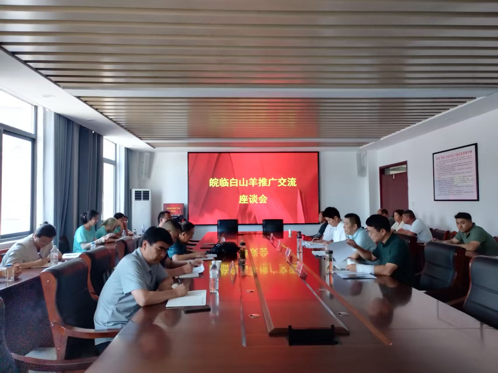 同日下午,团队负责人随张运海老师赴杨桥镇政府,参加皖临白山羊推广座谈会。与会代表深入交流了白山羊扩繁推广工作,学院专家团队详细介绍了智慧羊场建设项目、扩繁推广计划及畜牧产业联盟的未来工作方向。