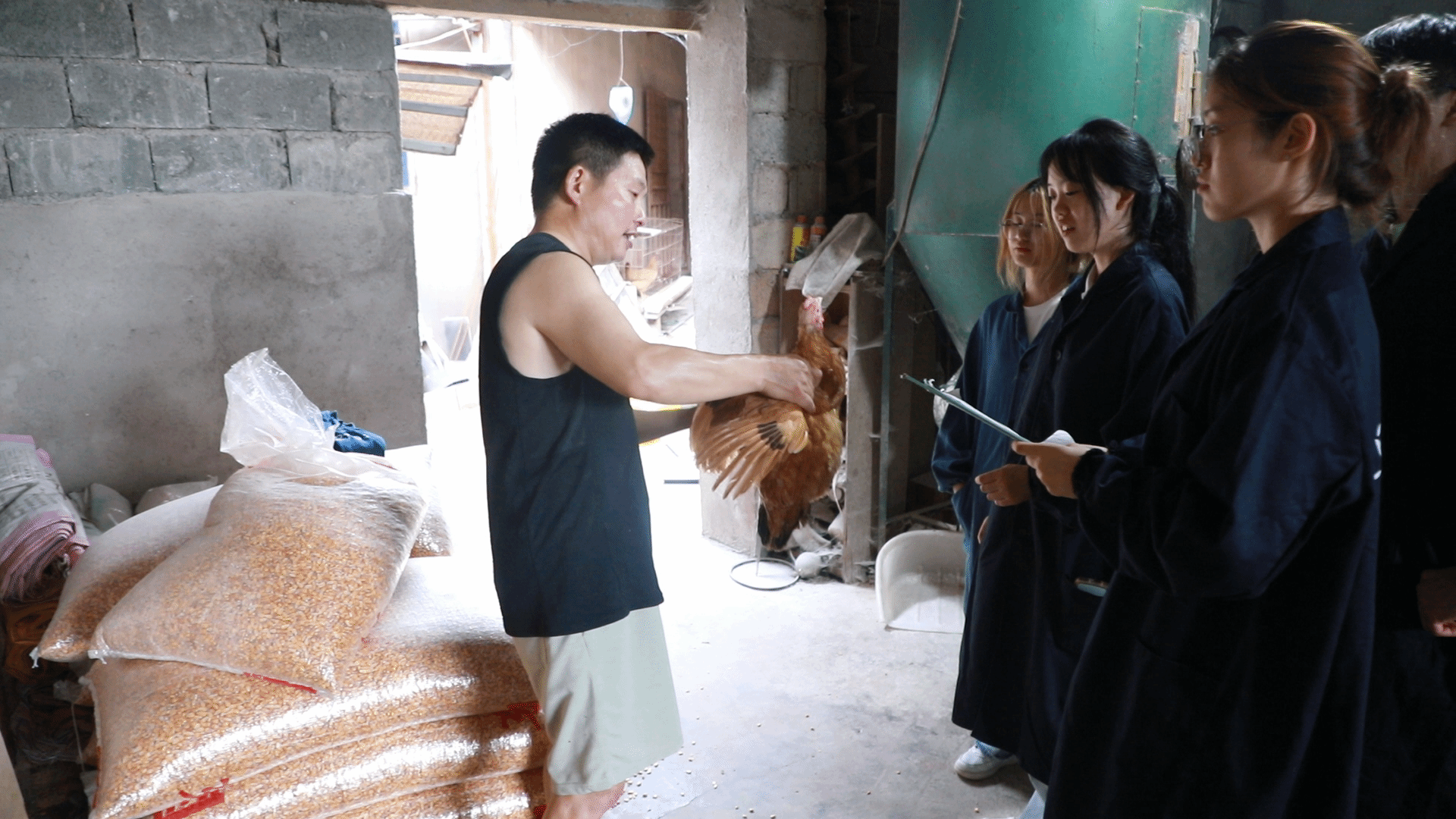 7月28日,团队兵分三路走访周边15户养殖户。走访发现,“技术缺、渠道窄、风险高”是养殖户共同痛点:65%的养殖户最需要疫病防控技术培训,58%希望拓宽销售渠道。队员们围坐整理调研数据、观察记录和访谈笔记,连夜完成《金鸡峰家庭农场地方鸡业发展调研报告》。