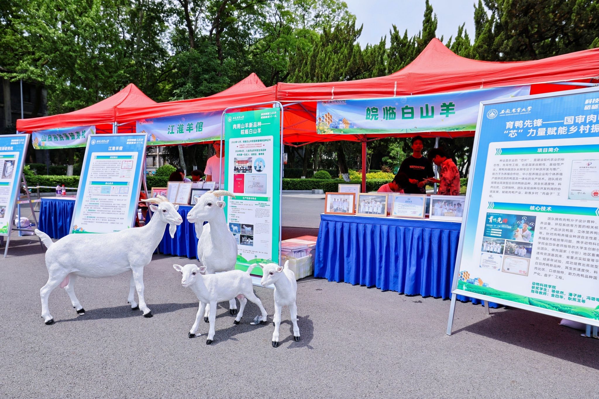 科技创新成果展区重点展示的三大项目成为亮点。“肉用山羊新品种——皖临白山羊”展示特色育种成果。“江淮羊倌智能养殖系统”体现智慧养殖技术应用。“育鸭先锋——国审肉鸭‘芯’力量”聚焦种业创新。这些项目生动展现了科技在现代农业发展和乡村振兴中的蓬勃活力与显著成效。