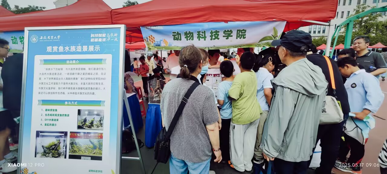 传统农耕展区亮点纷呈。扬子鳄、猫头鹰、河豚等珍稀动物标本以及清江鱼、斗鱼、孔雀鱼等观赏鱼类有序陈列,吸引了众多师生驻足。现场同步开展了小动物与鱼类知识有奖问答及“捞金鱼”趣味互动活动,参与者不仅增长了知识,加深了对动物的了解,更有机会赢取动物模型积木或活体金鱼作为奖品,现场气氛热烈。