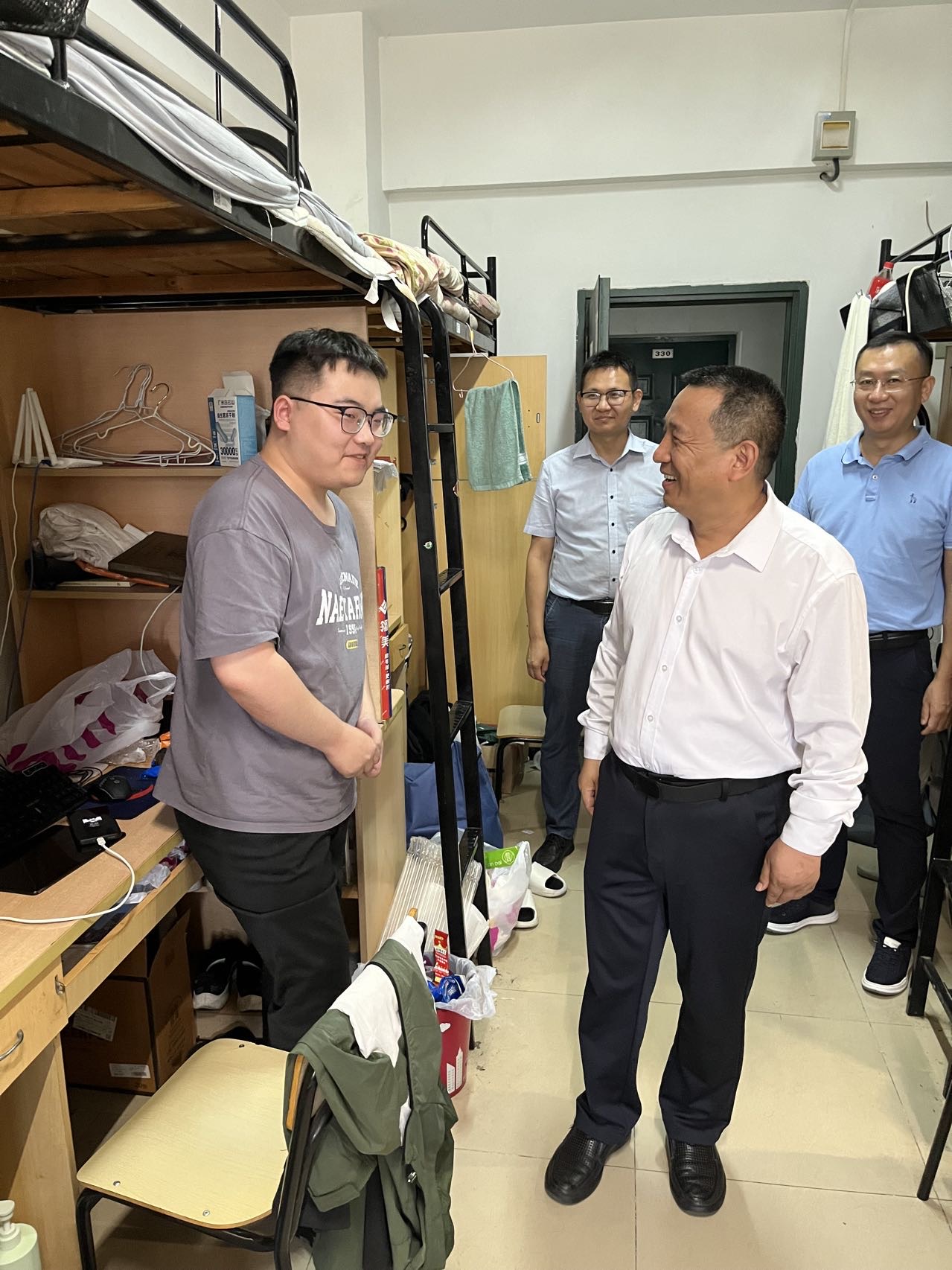 本网讯 在2025届毕业生即将告别母校、踏上人生新征程之际,为表达学院的深切关怀与美好祝愿,6月16日下午,学院领导班子全体成员、毕业班辅导员走进学院毕业生宿舍,看望慰问即将离校的毕业生。