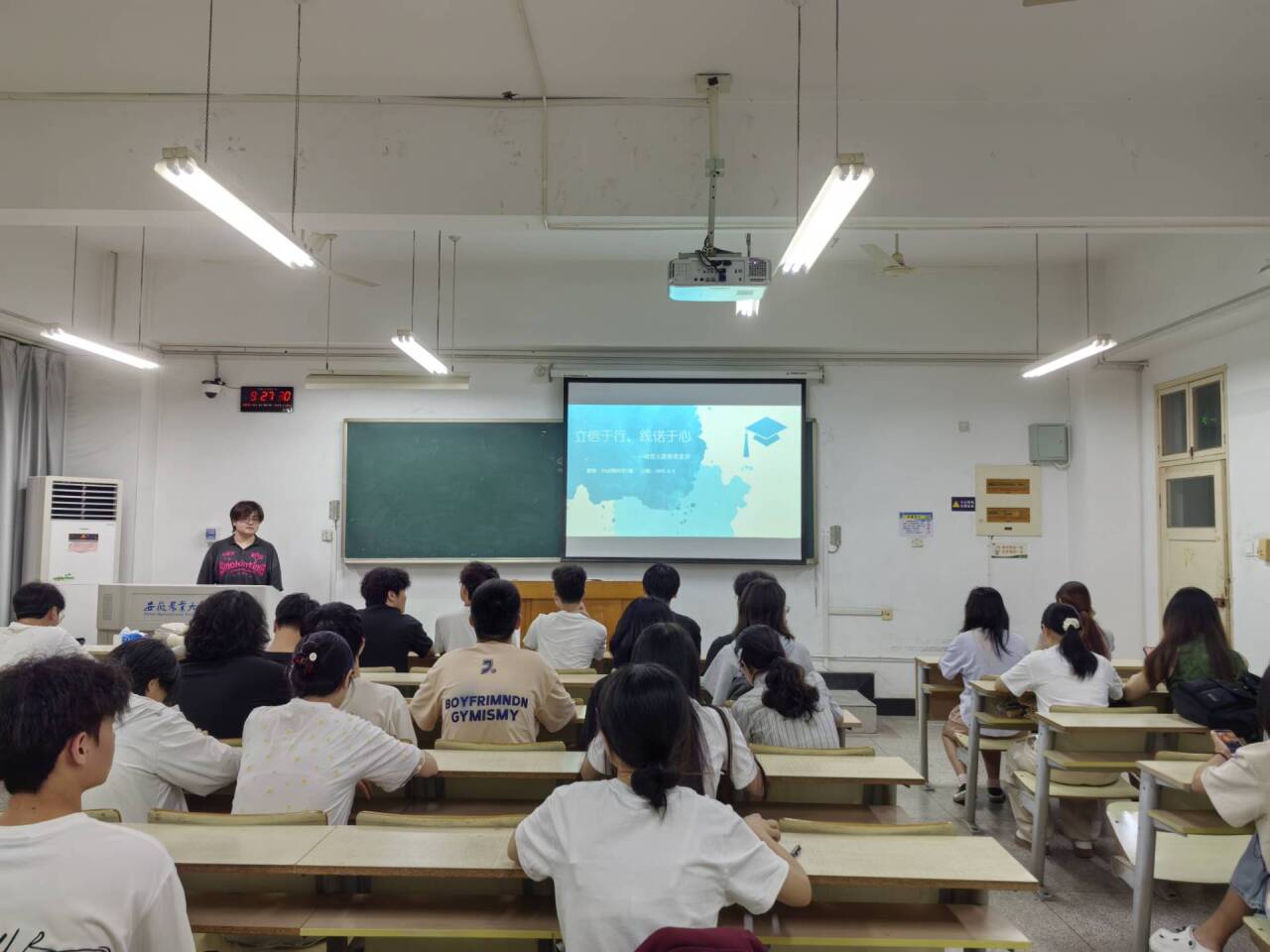 学院27个班级纷纷开展以“诚信考试 诚信做人”为主题的班会活动。班会中,通过分享古今中外的诚信故事,引发学生对诚信内涵的深入思考;组织学生讨论诚信话题,鼓励大家畅所欲言,交流对诚信的理解与感悟。此外,学生们还签订了诚信承诺书,以书面形式庄重承诺践行诚信原则,并进行集体宣誓,以坚定的誓言表达了自觉遵守诚信考试、诚信做人的决心,进一步强化了诚信意识。