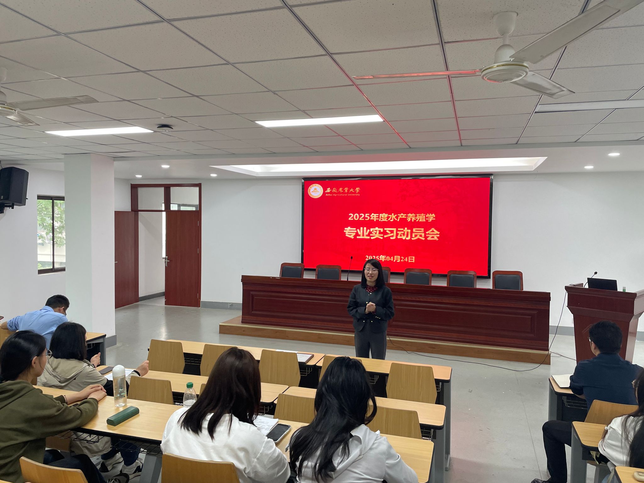 本网讯 4月24日,水产系在学院318教室组织2025年度《四大家鱼人工繁殖与病害防治生产实习》动员会。学院副院长袁小琛、水产系相关指导教师、2022级水产养殖学专业学生等参加会议。