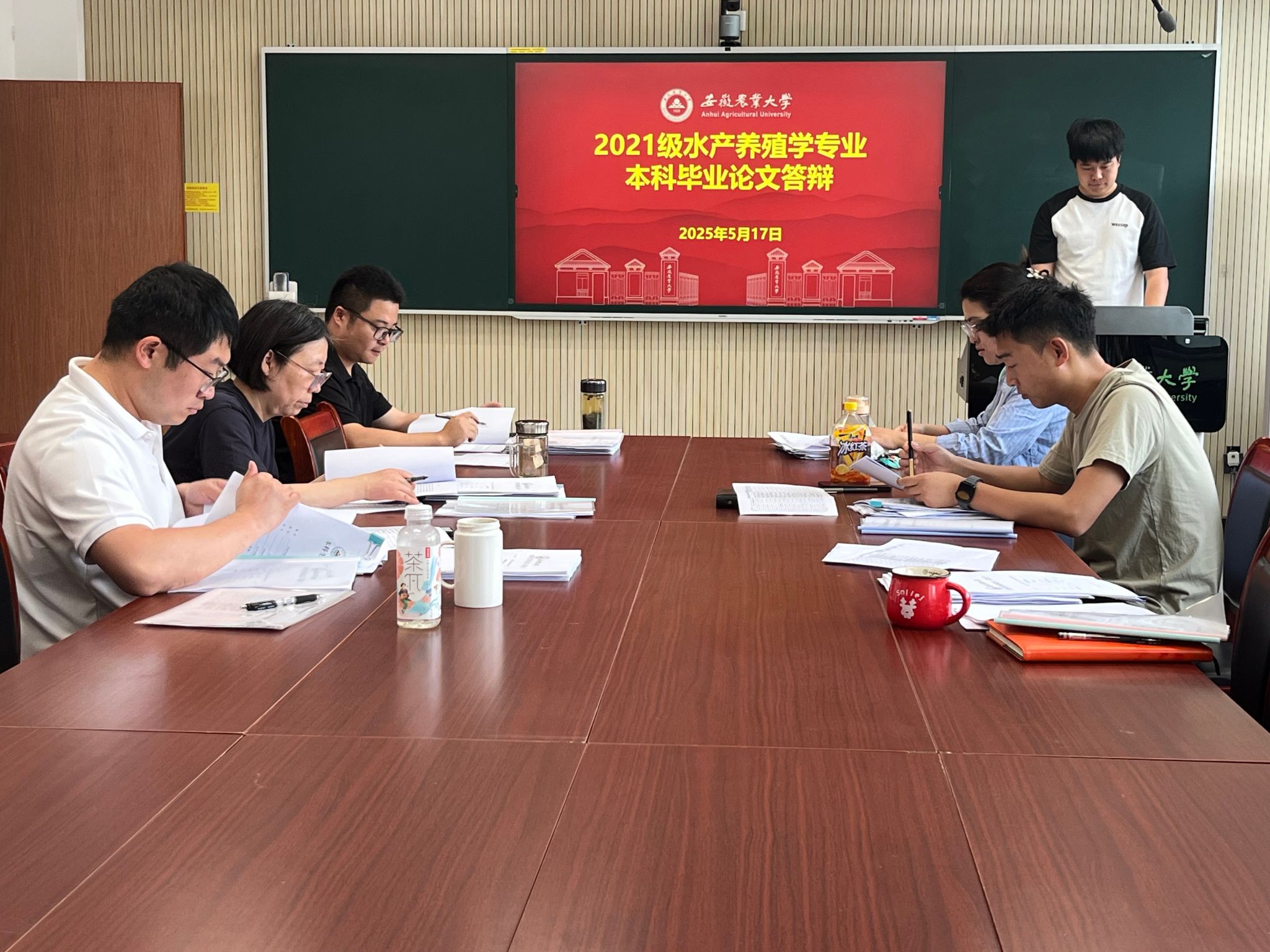 本网讯 5月17日,2025届水产养殖学本科毕业论文答辩工作在动科楼306会议室顺利举行。本次答辩共有31名本科毕业生参加,学院水产系教师参与答辩评审工作。