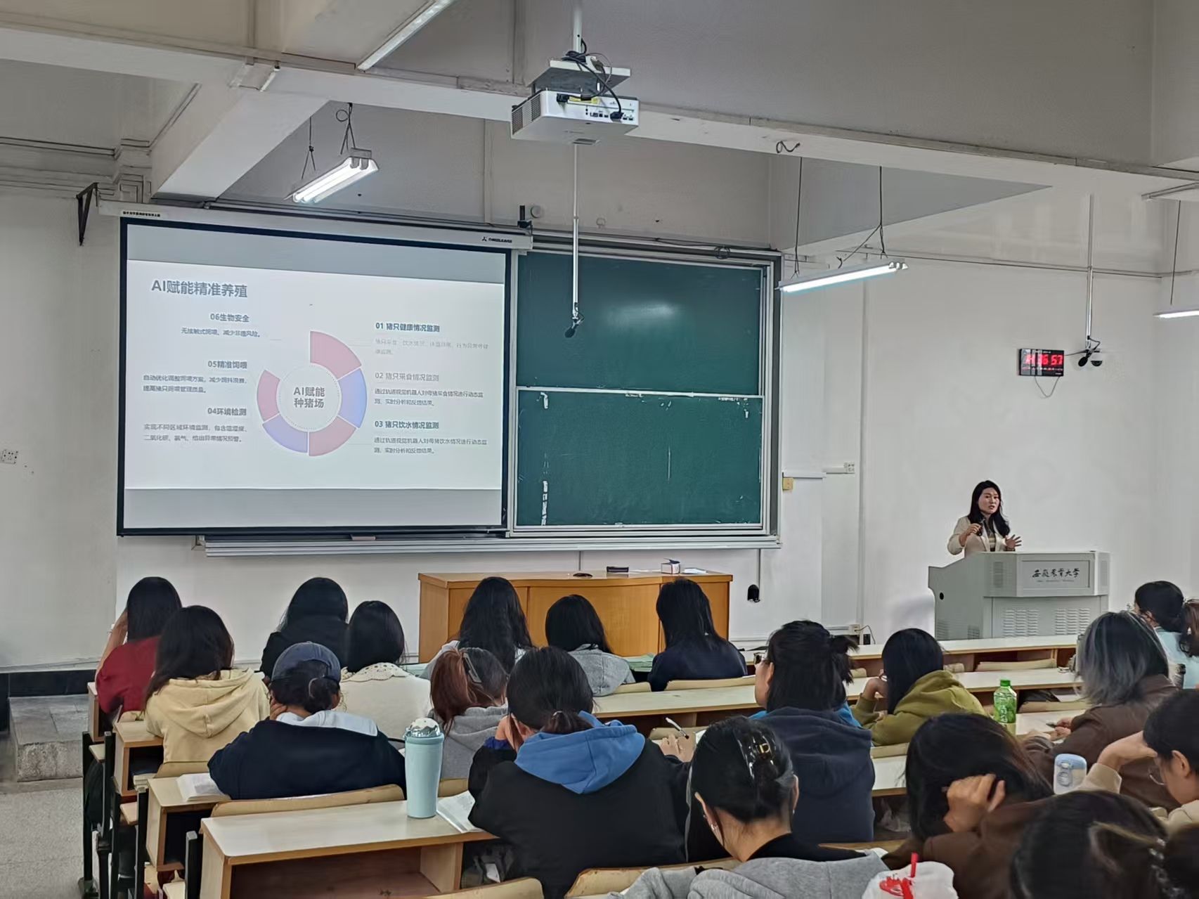 韩华结合课程教学大纲和公司特色,就人工智能在畜禽养殖过程中环境调控、数据智能化采集、精准饲喂、机器人巡检及牧场自动预警、可视化无人值守和畜牧场精准管理进行案例分析和交流。