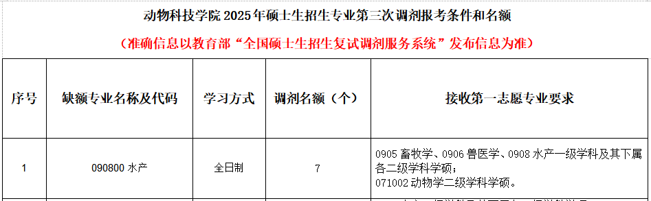 动物科技学院2025年硕士研究生招生第三次调剂计划(水产)