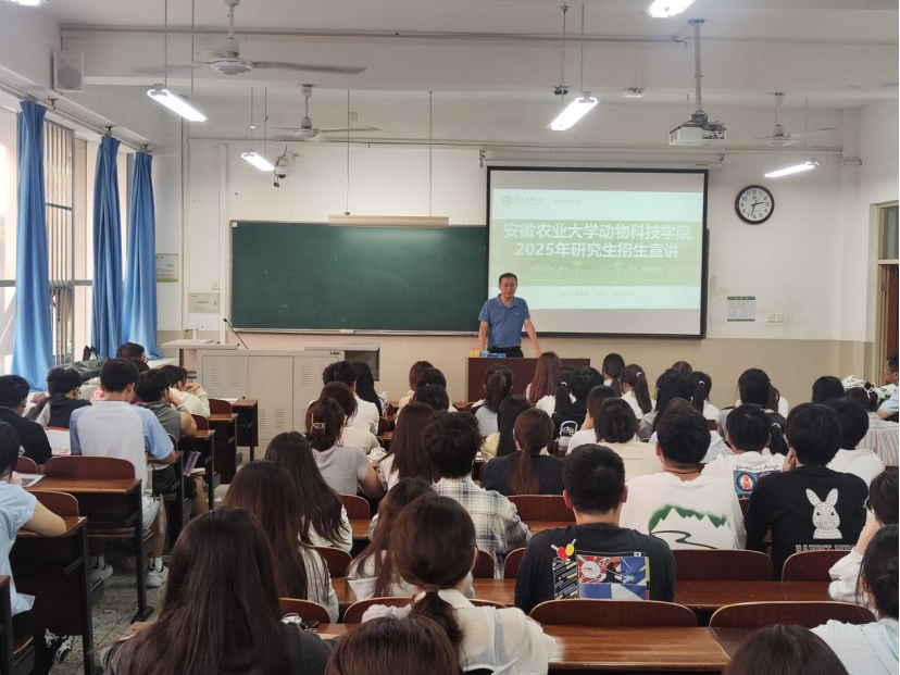 本网讯 为做好2024年研究生招生宣传工作,让广大考生对我校有更加全面的了解,进一步提高研究生生源质量。9月25日,动物科技学院副院长曹祖兵带队赴淮北师范大学生命科学学院开展研究生招生宣传,宣讲会由生命科学学院副书记谢红霞主持。