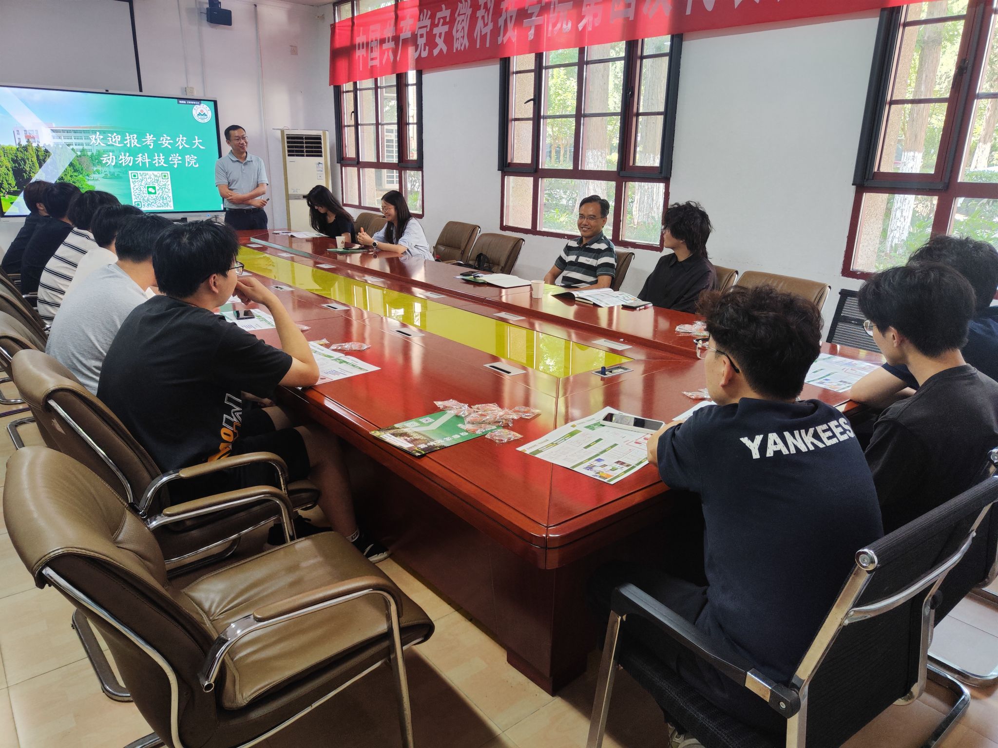 本网讯 为拓宽优质生源渠道,吸引优秀学子报考,7月8日下午,学院副院长曹祖兵、袁小琛率队,携水产系学位点负责人张志强、副主任许然、教师陈啸等一行,分别前往安徽科技学院、淮南师范学院开展2026年研究生招生宣讲活动。安徽科技学院动物科学学院党委副书记、副院长(主持工作)周金星,淮南师范学院生物工程学院党委副书记王云等参加宣讲会。