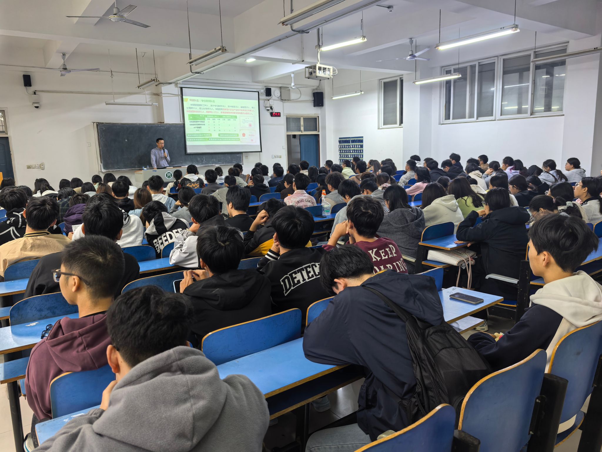 学院围绕师资力量、学科特色、人才培养、科研平台、社会服务及学校整体办学优势等方面作了系统介绍,重点展示了学院拥有一支由国家级人才、省级学术技术带头人引领的高水平师资队伍,在动物遗传育种与繁殖、动物营养与饲料科学、水产养殖等学科方向形成鲜明研究特色与扎实科研积累,为学生成长提供坚实平台,使在座同学对我院研究生教育形成了更为全面的认知。